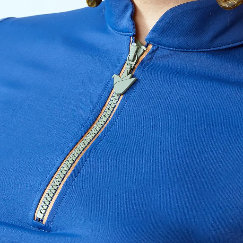 With contrasting colours shining through, the Matira Zip Down Swim Top defines versatility, wear it by itself as a cover up or swim top when snorkeling or braving water sports, paired with high waisted swim tights in Olive & matching Grace Swim Turban in Lapis & Olive.
