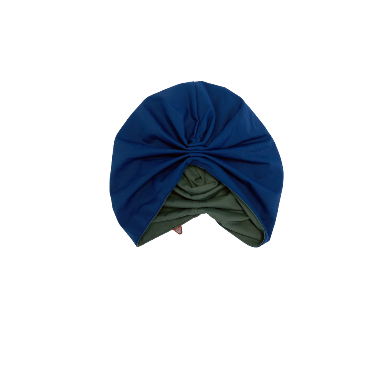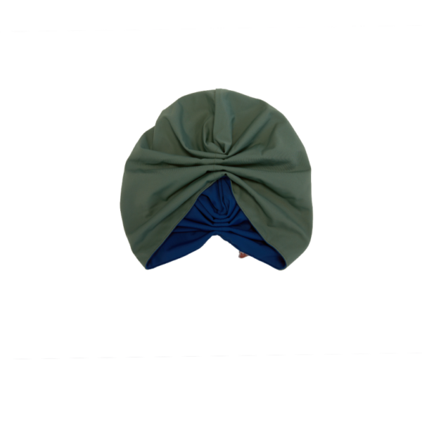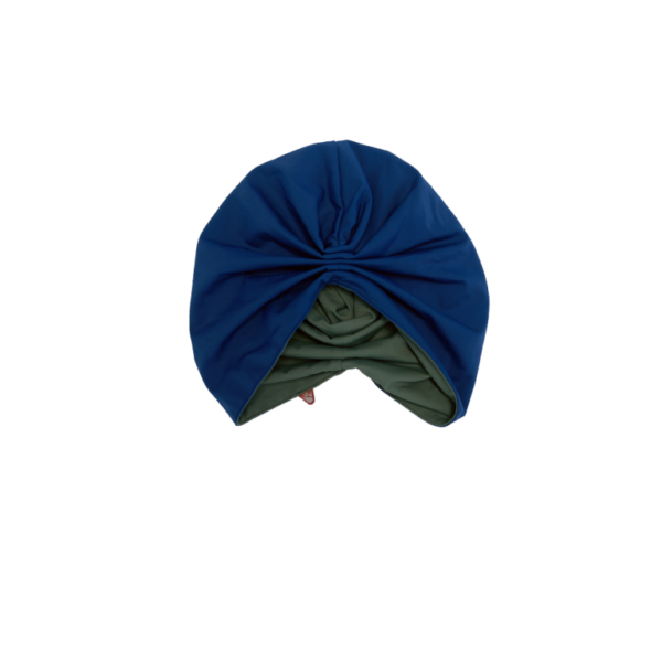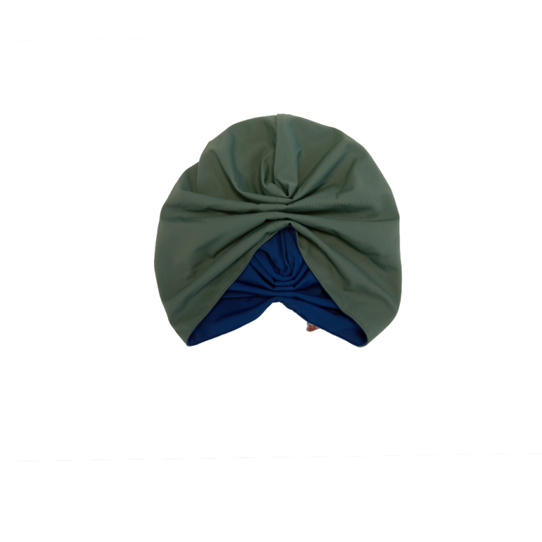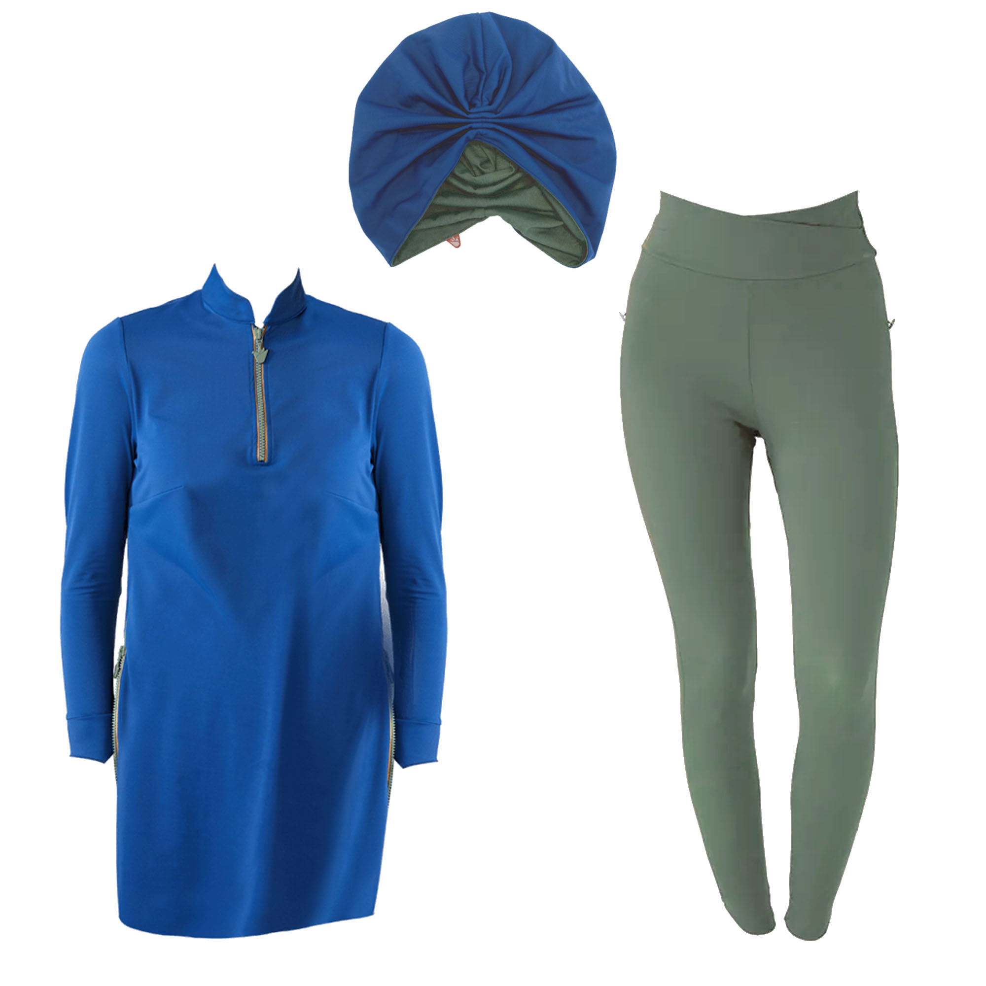 This set is comprised of 3 Pieces; Matira Swim Top in Lapis & Zippered Olive fold outs, high waist Swim Tights in Olive, & a double sided Grace Swim Turban in Olive & Lapis.